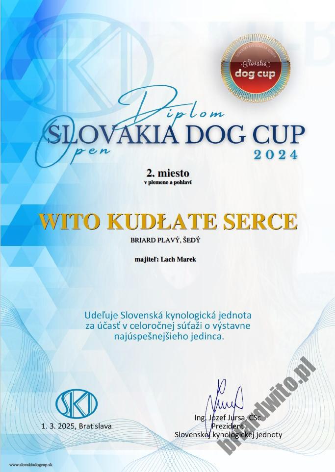 W 2024 roku Wito w Słowackim Rankingu Wystawowym zdobył 76 punktów na 5 wystawach. Zajął 2gie miejsce wśród psów i 3cie miejsce w rasie.